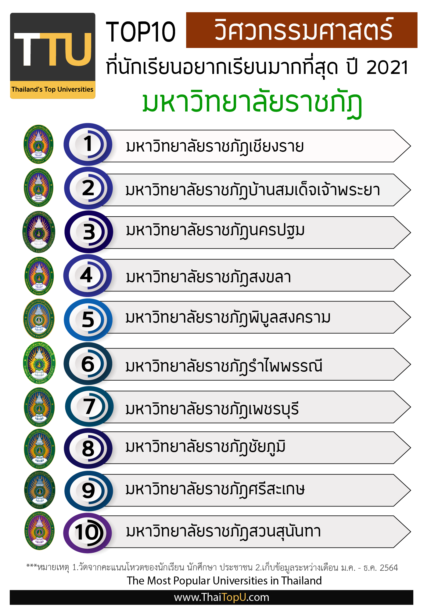 วิศวกรรมศาสตร์ ราชภัฏฯ รำไพพรรณี ติด TOP 6 หลักสูตรวิศวรรมศาสตร์ที่มีนักเรียนอยากเรียนมากที่สุด ปี 2021 จัดอันดับมหาวิทยาลัยโดยThailand Education Ranking (TER) ที่มา : https://thaitopu.com/content/126